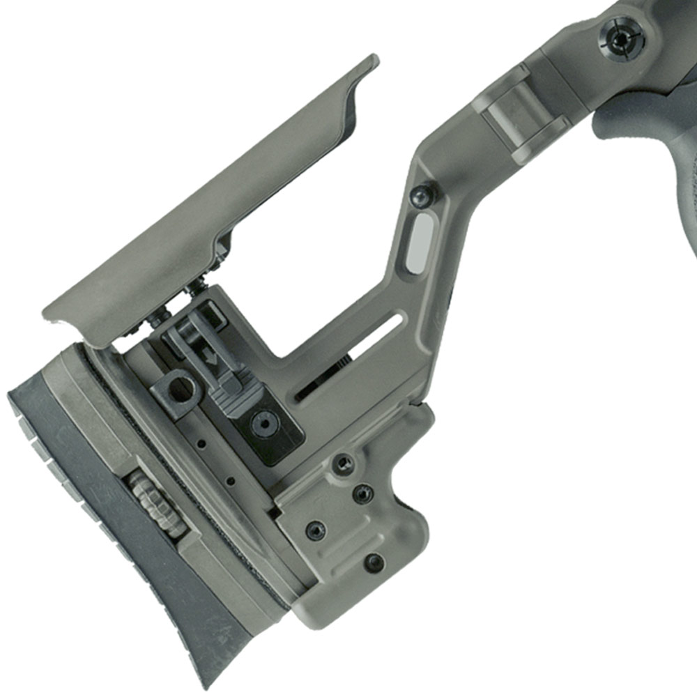 - Adjustable Cheekpiece and Buttpad: Achieve perfect alignment and comfort with tool-free adjustments for cheek height and length of pull, customizable to individual shooter preferences.