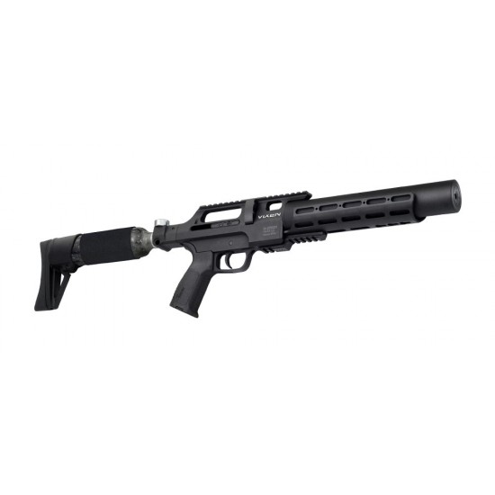 Embracing a tactical aesthetic, the Vixen’s compact size and maneuverability make it a formidable choice. Powered by a PCP (Pre-Charged Pneumatic) system, the rifle ensures consistent shot after shot, thanks to its outstanding air pressure regulator. Furthermore, the Vixen sports a fully adjustable trigger and an easy-cocking side lever, which can be conveniently switched to either side of the rifle.