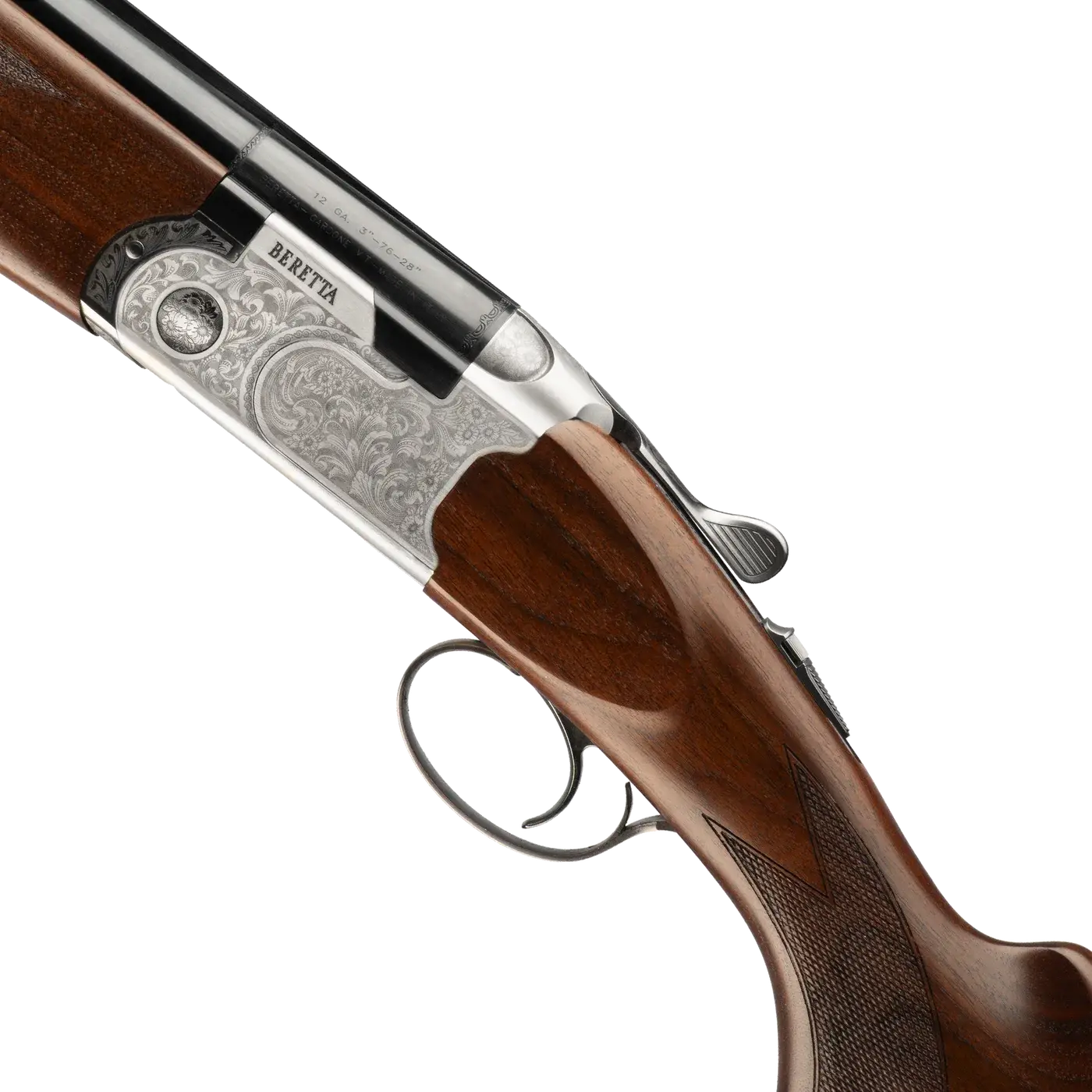 This generation debuts a more elaborate floral laser engraving extending to the receiver tail and hinge pins, executed with Beretta’s advanced 5-axis laser technology. It’s paired with Grade 2 European walnut featuring a higher 35/55 drop for improved handling, available in both right- and left-handed models, along with a Vittoria stock option.