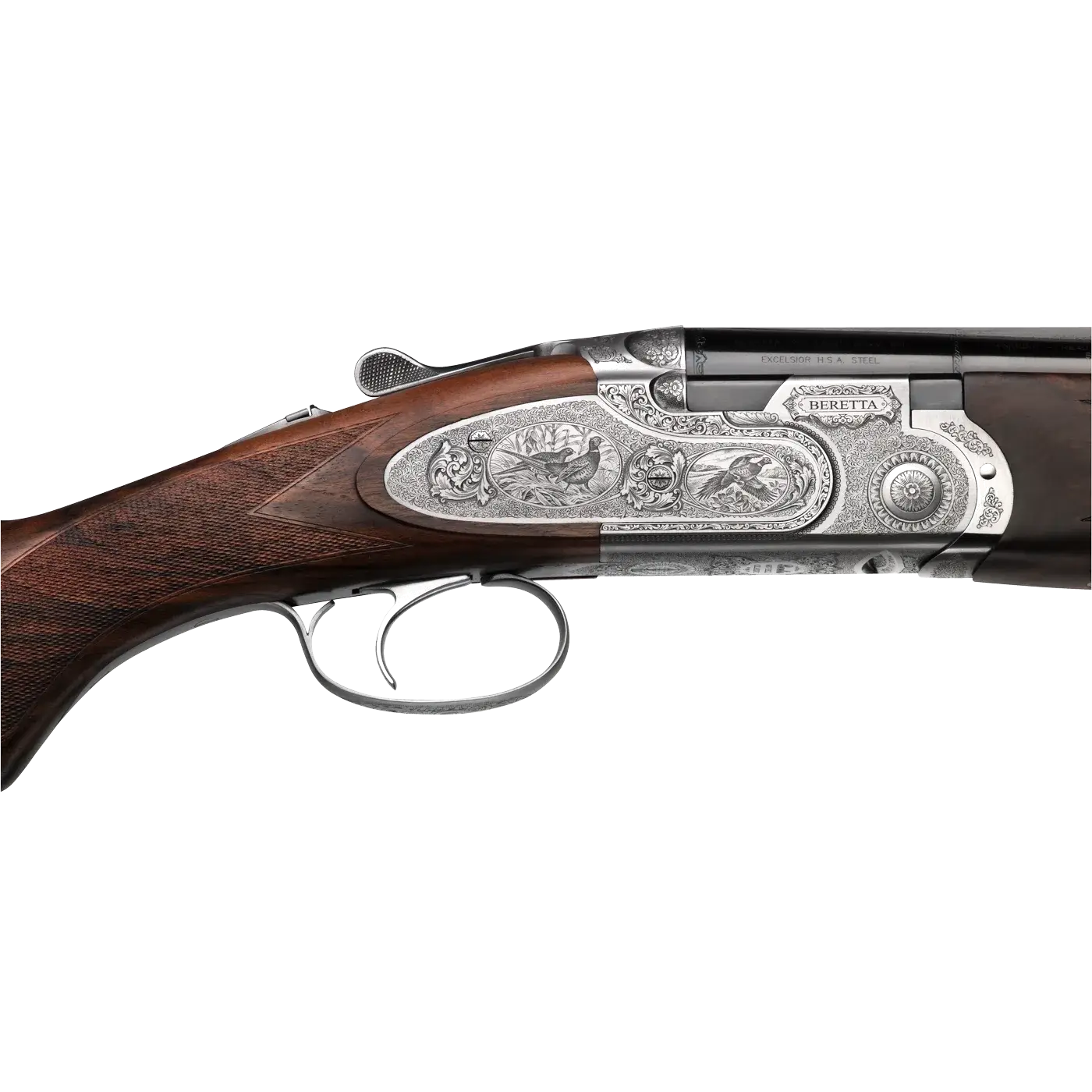 In addition to the fine woodwork, the side plates of the Beretta 687 EELL are adorned with your choice of vignette game scenes .