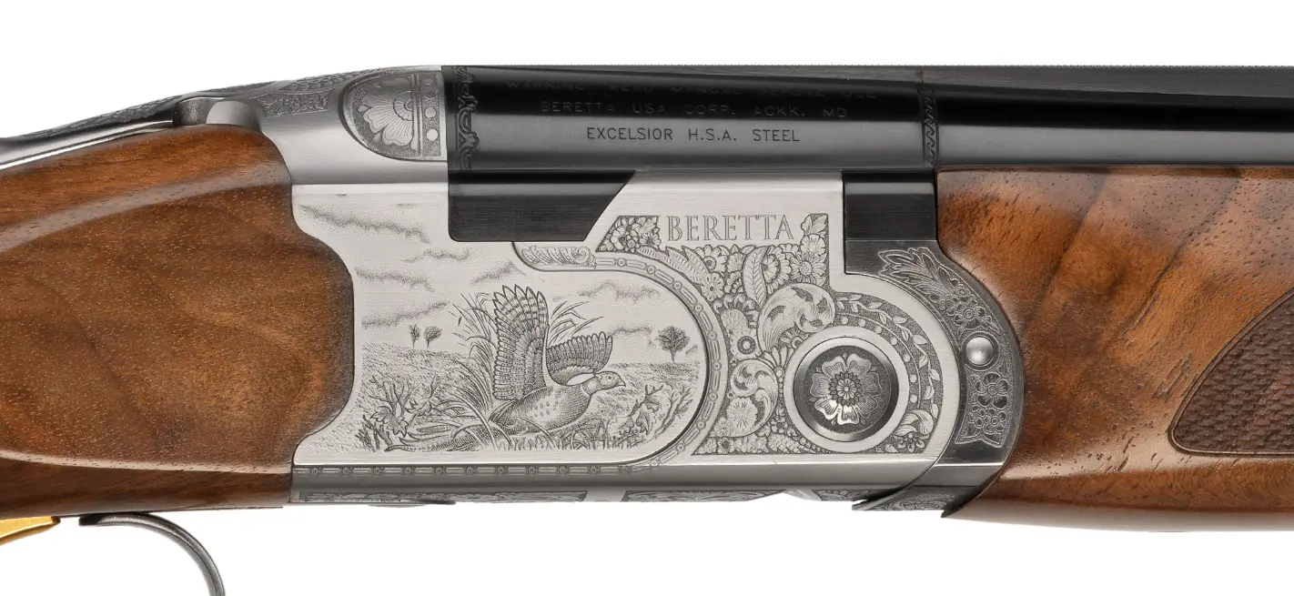 Adding a touch of class, the receiver is adorned with intricate game scene engravings, elevating the aesthetic of the gun beyond typical competition models. It’s a firearm that blends heritage craftsmanship with modern performance, making it a true standout in any lineup.