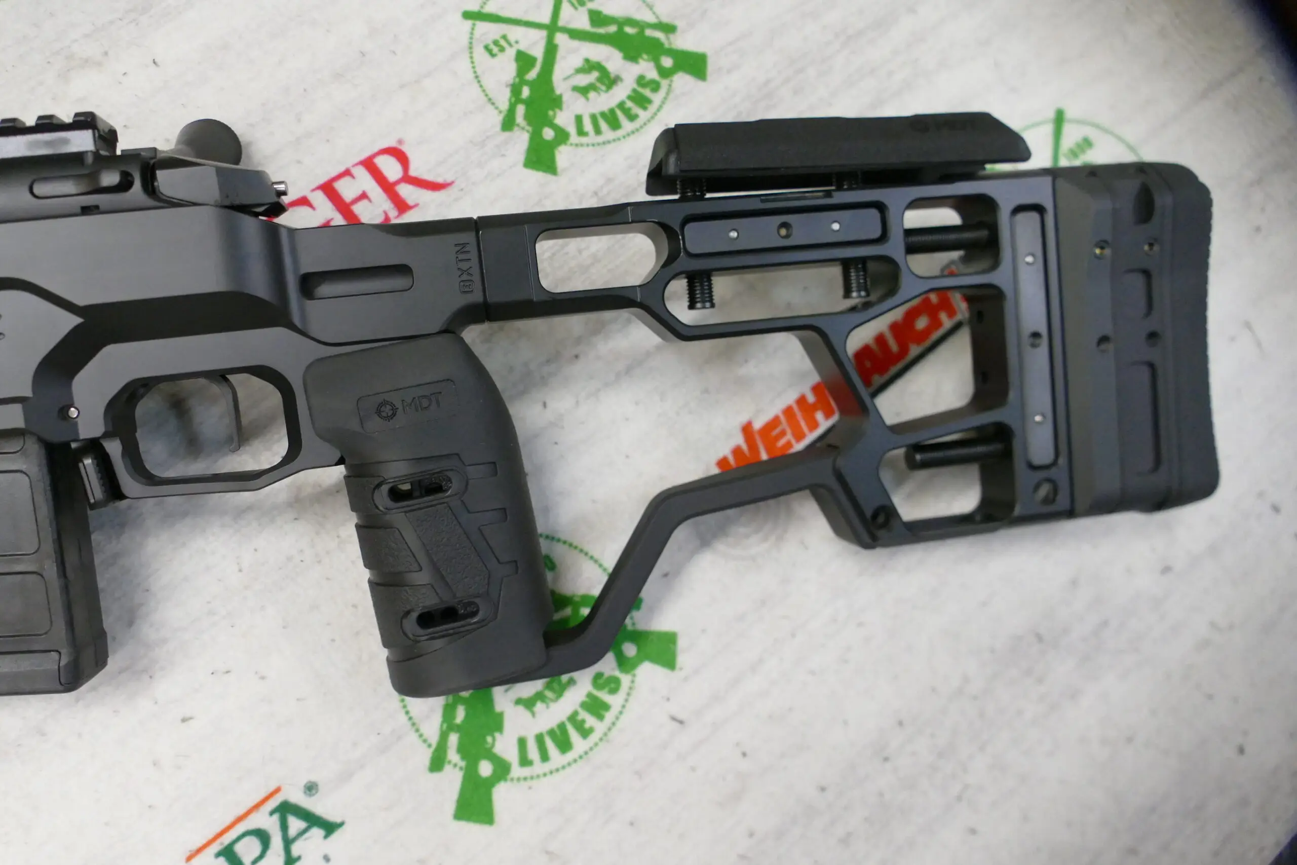 Features the SRS-X Elite toolless buttstock and adjustable MDT Vertical Grip Elite for personalized ergonomic fit.