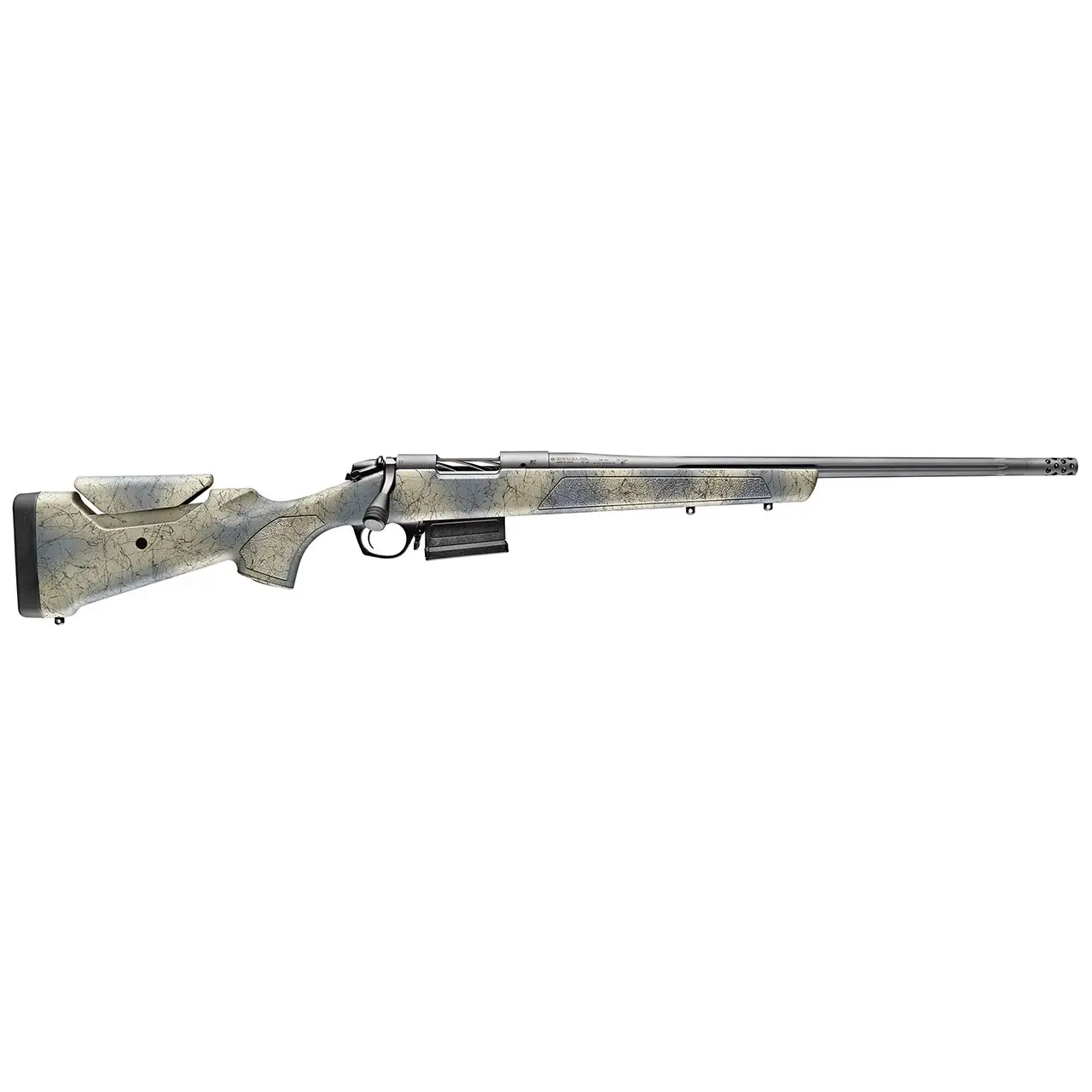The ultra-smooth B14 action, also finished in Sniper Grey Cerakote®, uses a two-lug bolt with a sliding plate extractor and a coned bolt nose for seamless cycling. Whether you’re taking a fast follow-up shot or quietly chambering a round in the field, this action performs flawlessly.