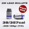 GM Lead Bullets .358 158gr (T/C) Pk500 38/357cal