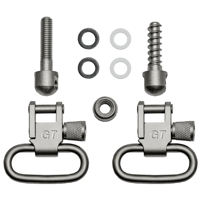The “GrovTec Machine Screw Forend Locking Swivel Sets” with 1-inch loops come with a satin nickel plated finish. These swivel sets are meticulously designed by GrovTec to offer secure and convenient sling attachment options for firearms. The 1-inch loops are ideal for accommodating slings and straps.