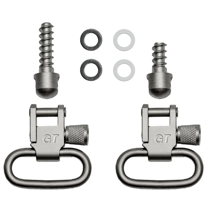The “GrovTec Wood Screw Forend Locking Swivel Sets” with the product code GTSW14 feature 1-inch loops and come with a satin nickel plated finish. These swivel sets are specially designed by GrovTec to provide a secure and convenient way to attach slings to firearms, particularly those with a forend locking system.
