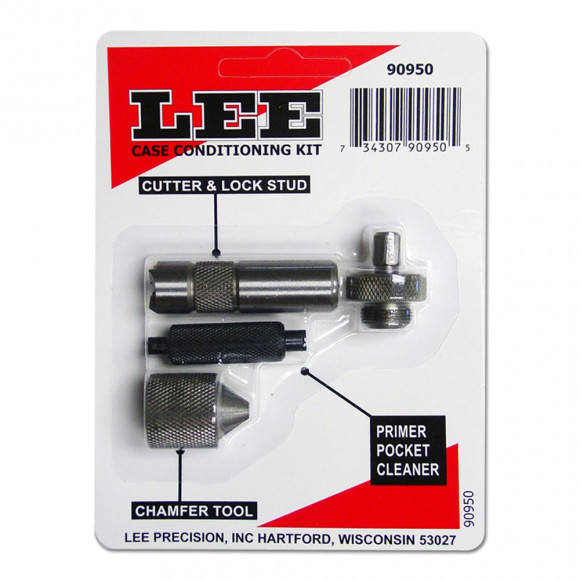 Case Conditioning Kit inlcudes cutter and lock stud, chamfer tool and primer pocket cleaner. Order the appropriate case length gauge to complete this kit.