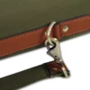 - Made of durable green canvas with leather accents