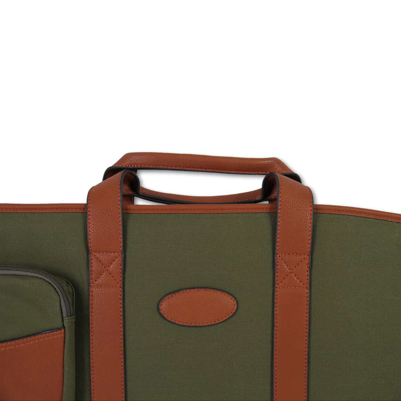 - Made of durable green canvas with leather accents