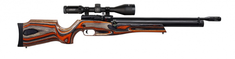 The Reximex Pretensis is a full length sporter rifle with a 260cc air cylinder. Due to the 260cc air cylinder the rifle is capable of 120 shots at 200bar.