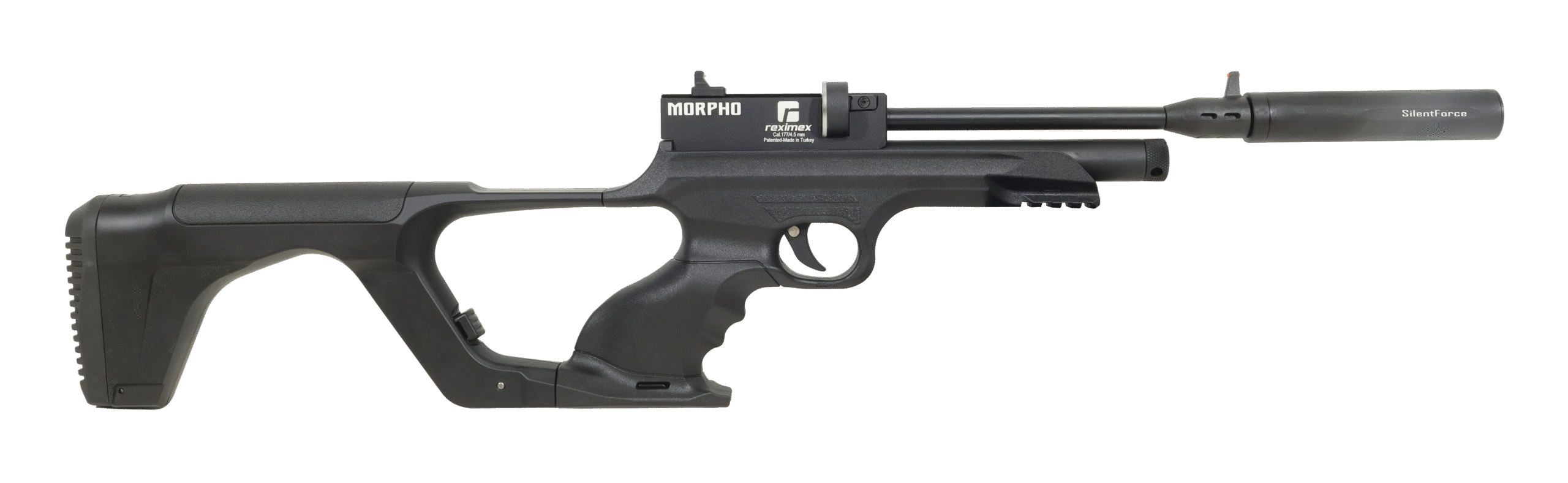 The Reximex Morpho is a compact, reliable CO2 air pistol built for backyard plinking and precision target practice. With a side-lever cocking system, fiber-optic sights and a synthetic stock, the Morpho balances accuracy, durability and value. It’s available in both 4.5mm / .177 and 5.5mm / .22 calibers and delivers consistent performance from a single 12g CO2 cartridge.