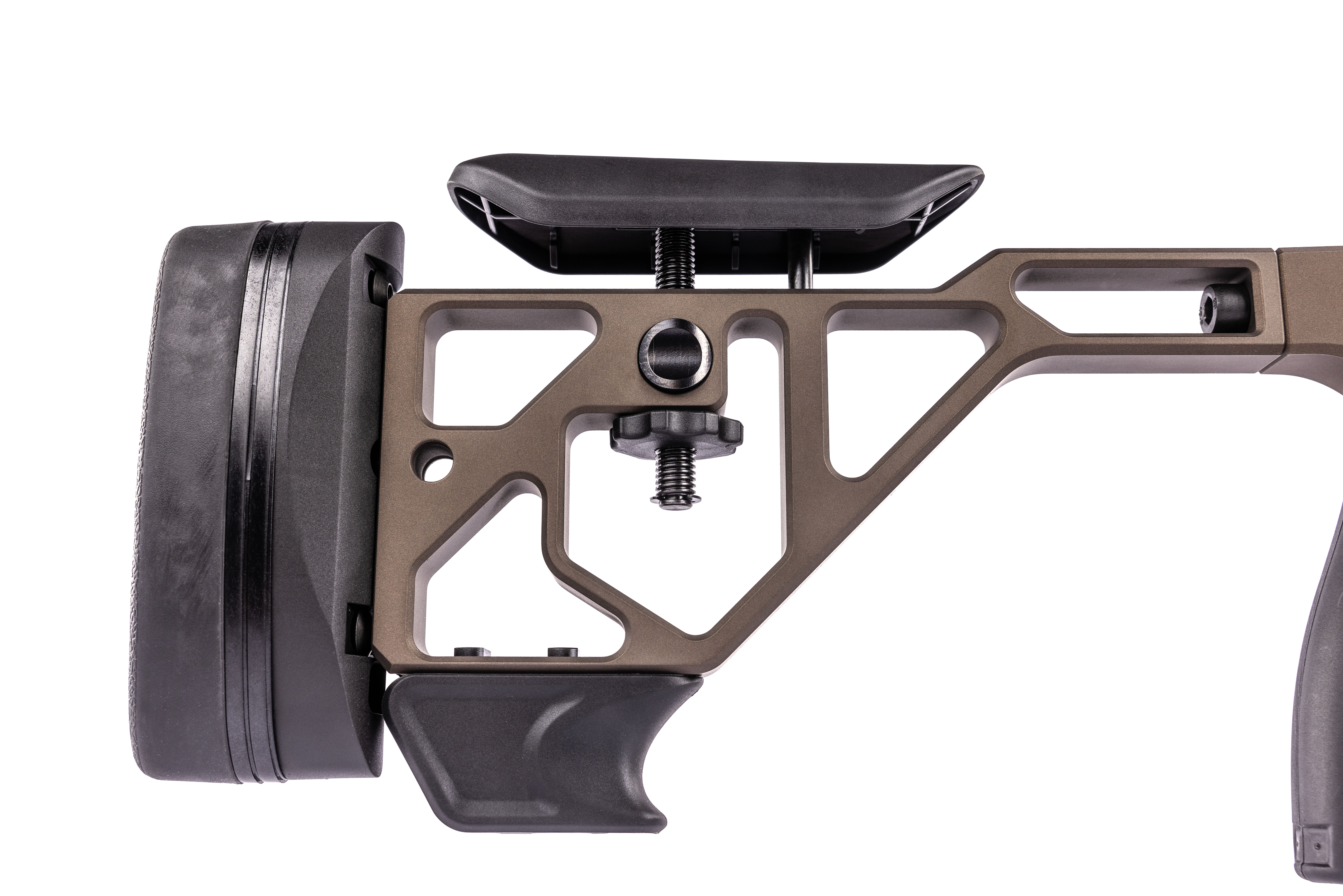 Adjustable Rear Stock: Fine-tune the length of pull, cheek rest height, and recoil pad for personalized comfort.